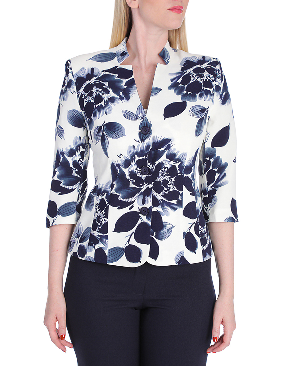 Blusa blanca con estampado floral en tonos azul marino: la base perfecta para lucir profesional sin renunciar a la feminidad