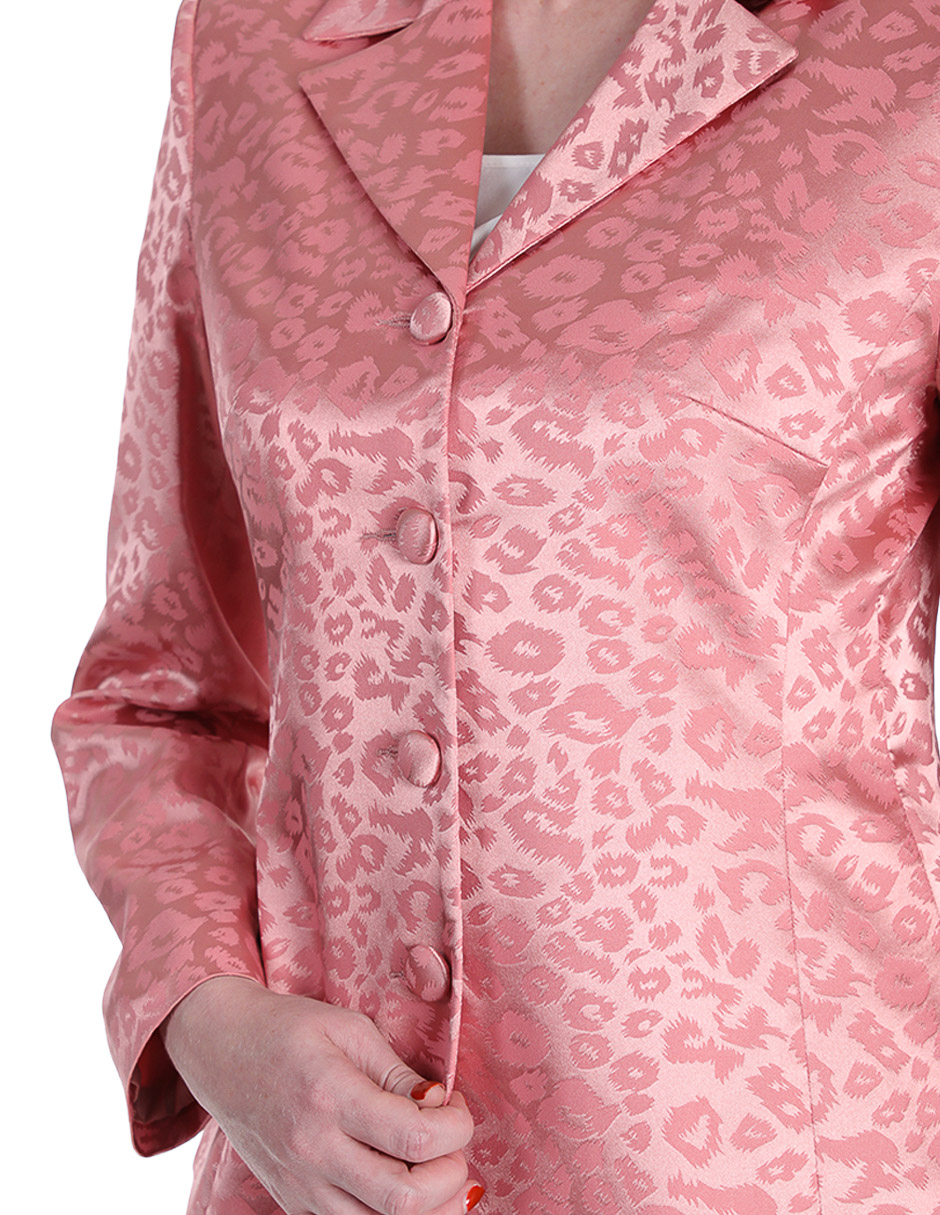 Blazer Rosa Satinado con Estampado Animal